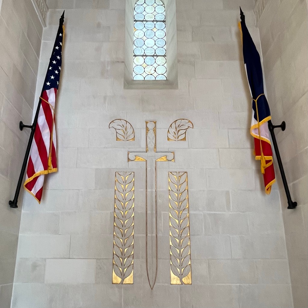 At either end of the brick memorial are small rooms containing a chapel and museum. All 48 states (at the time) and the District of Columbia are represented here on the crosses. Here are a few shots from inside the chapel room.