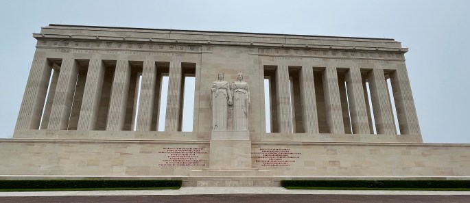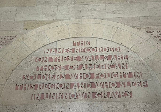 It is the largest of the Commonwealth Memorial to the Missing in the world. As seen in several of my photos, it is in a rural area, overlooking a valley. Parking is below and there is a wooded, peaceful walk to the memorial, not truly seen in it’s splendor until the trees part. This memorial is huge and awe inspiring.