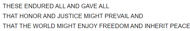 Again, a lot of symbolism. The 10 double columns along the back of the center brick monument are inscribed with the Division numbers who fought in this sector. The sides are engraved with images of contemporary images such as gas masks and artillery shells. Inscribed on the center block of the monument: