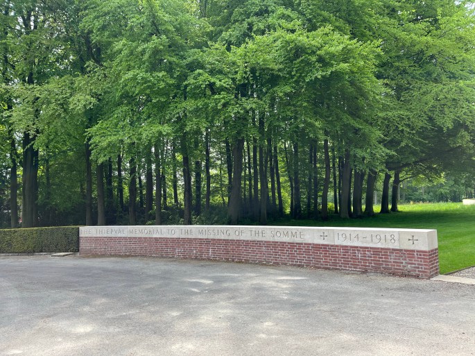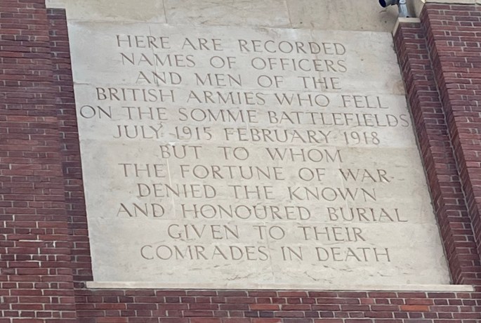 It dominates the rural scene and has 16 laurel wreaths inscribed with the names of the sub-battles that made up the Battle of the Somme and subsequent actions.