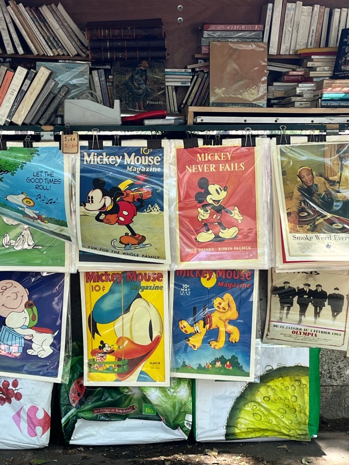 The bouquinistes, or used booksellers was a part of the second-hand book tradition begun around the 16th century. Now declared a UNESCO World Heritage site, over 240 bouquinistes make use of 900 of these green boxes to house some 300,000 old books and a number of other paper items. Rules and a waiting list (as long as 8 years) dictates minimums days of operation (4) and upkeep. Couldn’t resist this snapshot. And yes, the items are kept inside the boxes and secured overnight. Hence, most items are wrapped individually in plastic.