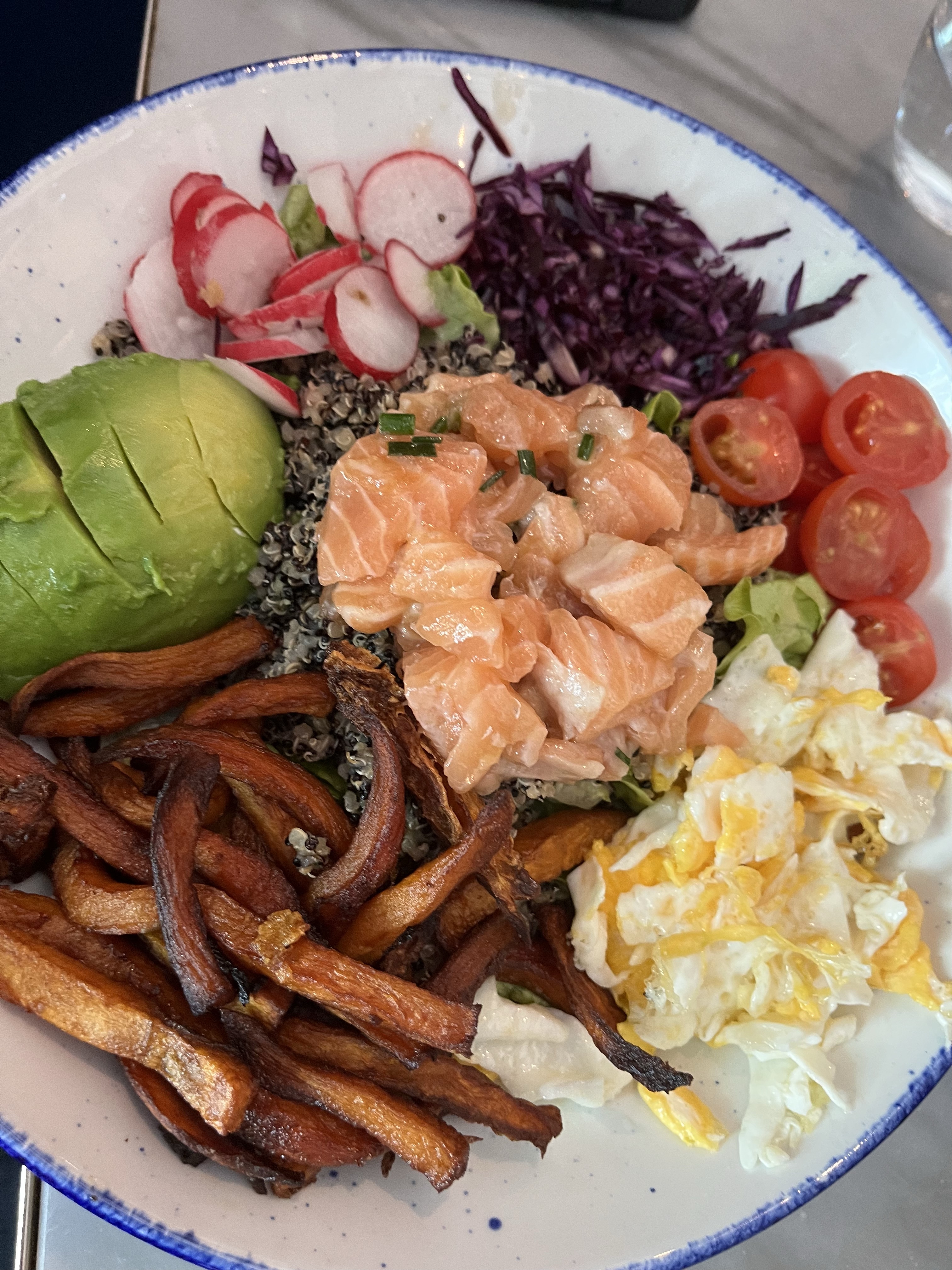 Regardless, we found our spot and grabbed a variety of breakfast options between all of us. Adrienne loved her salmon salad.