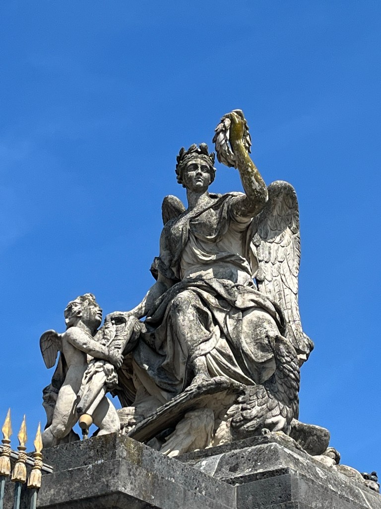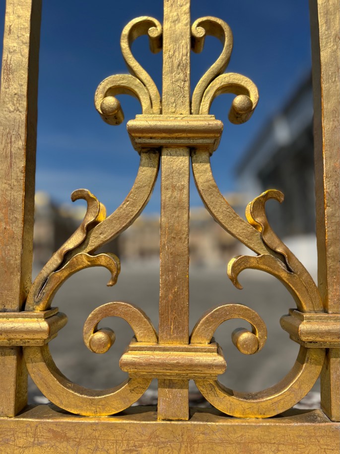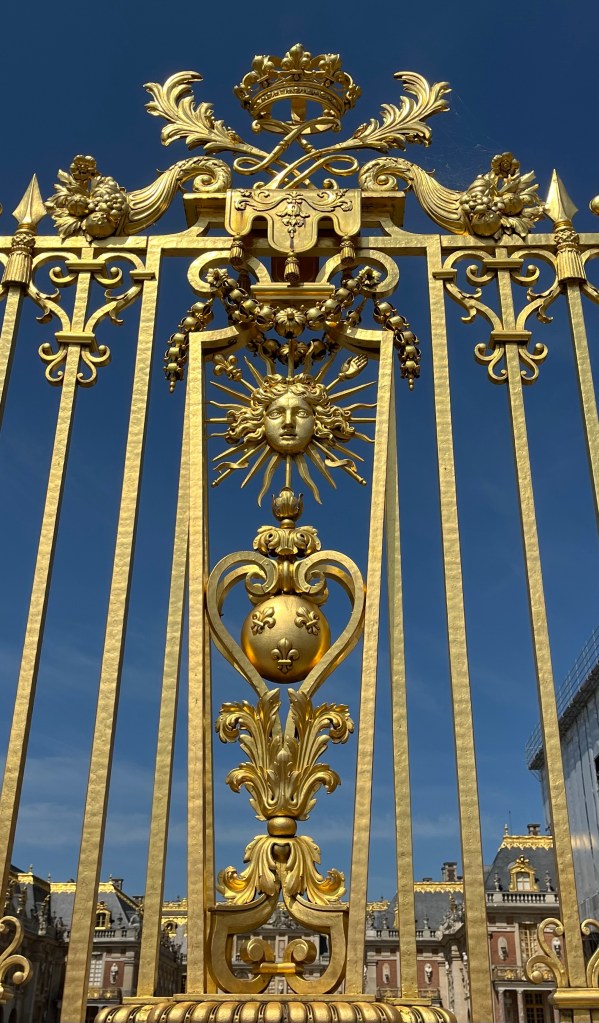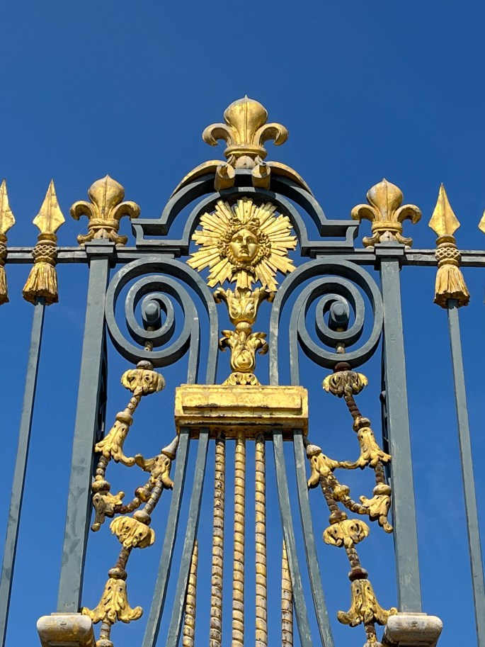 The gates are golden in honor of Louis XIV, the Sun King.