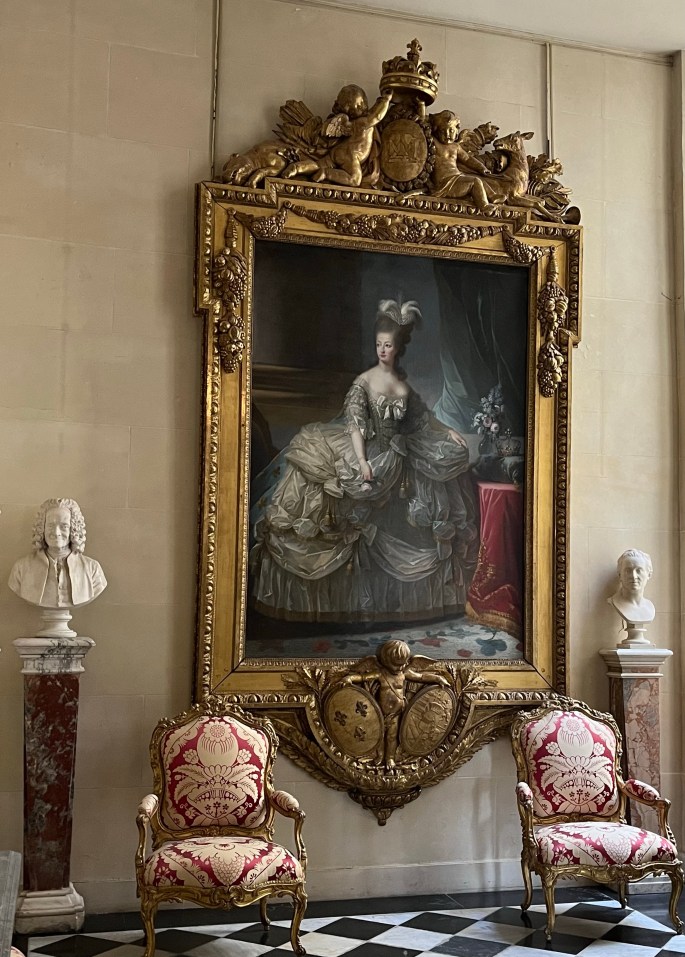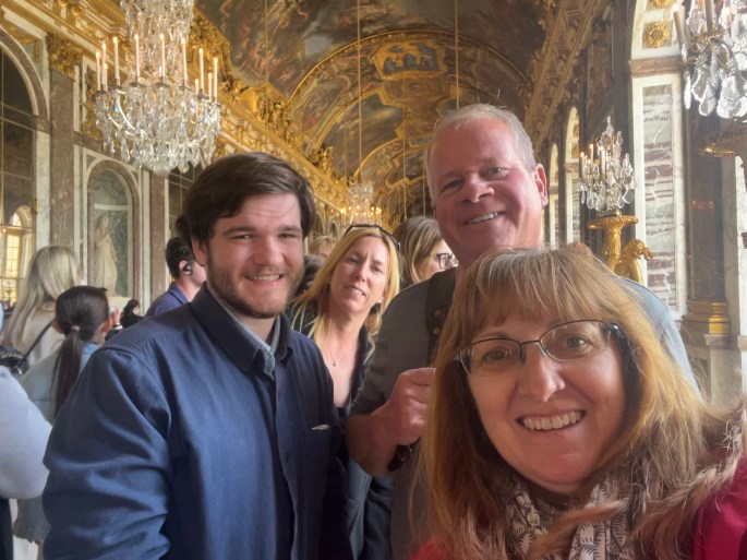 Tour? Did I mention we booked a tour? Why, yes. A number of years ago was when we first found out about an English-speaking tour – which allowed you to skip the long line – we jumped at the chance. For an additional 10 euro, after you purchased an entrance ticket, you skipped the (loooooong) entrance line, went through another security checkpoint (BTW – they stopped school groups and let us go first) AND got access to parts of Versailles that was not available, except with a tour guide. Sign us up! Which we did prior to arriving. 🙂