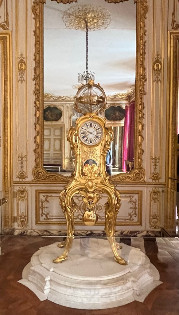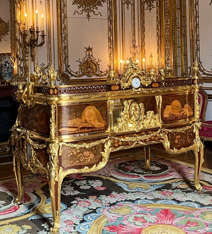 A lot of the furniture and furnishings were auctioned off, destroyed, carted away and no doubt sitting in private homes after the French Revolution. The foundation have actively sought out original furnishings, spending a great deal of euros to bring it back. Below was a desk used by Louis XIV.