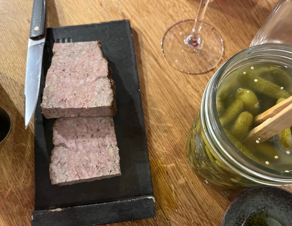 We kicked things off with a few shareables: (L) house pate’ w/ cornichons & (R) Braised duck.