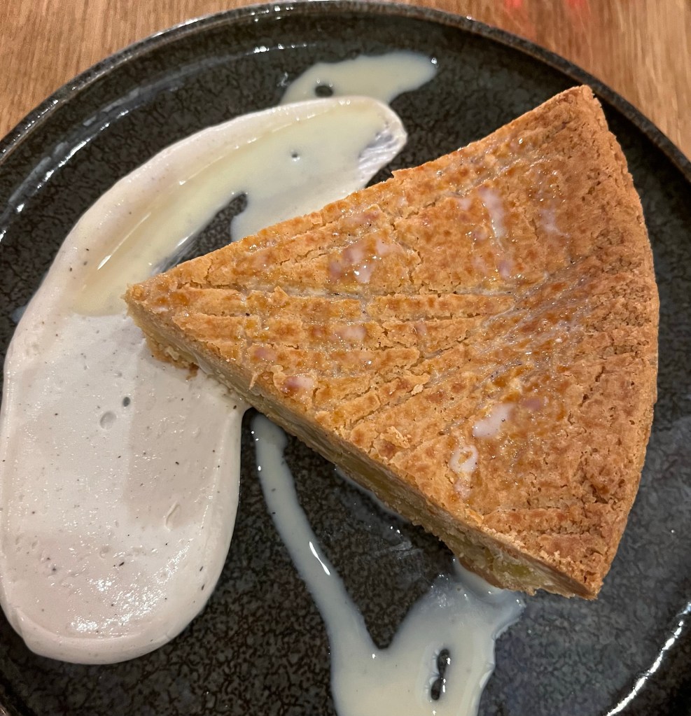 Two desserts were shared, one with apples and the other with cherries.