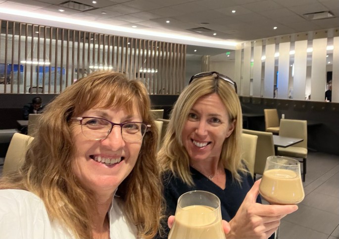 Yes, even though I love sunny, warm Florida, I’m headed up north with a friend across the border. Crazy – I know. First stop after getting through TSA and the people-mover to my gate…….maybe taking an extra ride to the wrong gate. 😦 ……….was the Club MCO. First time I had an Irish coffee in a wineglass. BTW – had to get another coffee to weaken it.