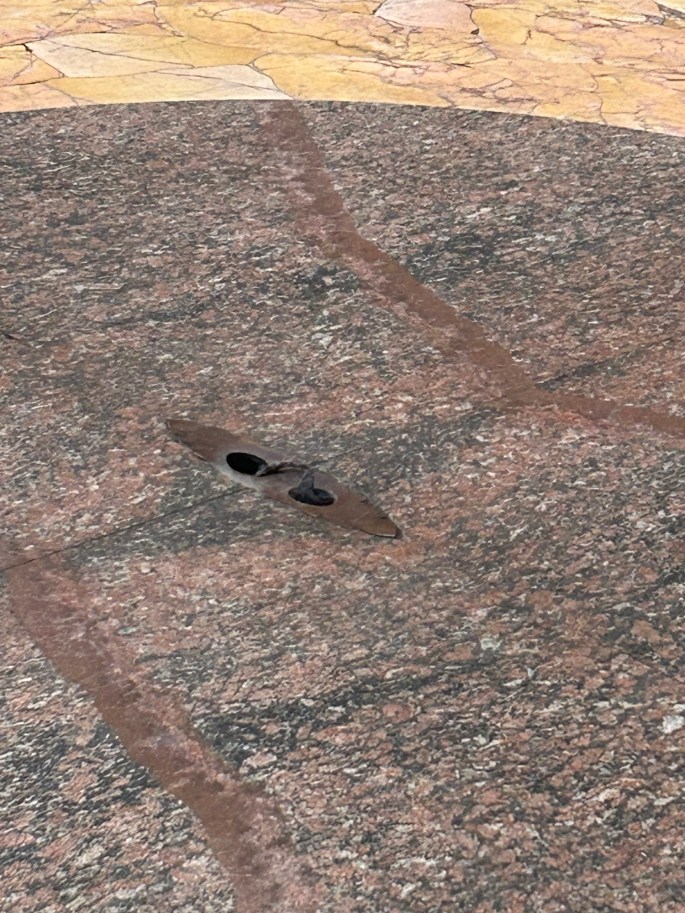 The top of the oculus has never been covered allowing rainfall through the ceiling onto the floor going into floor drains to promote runoff.