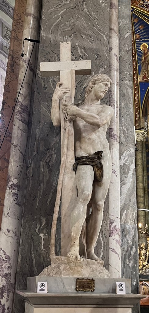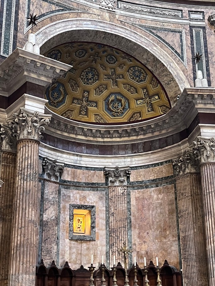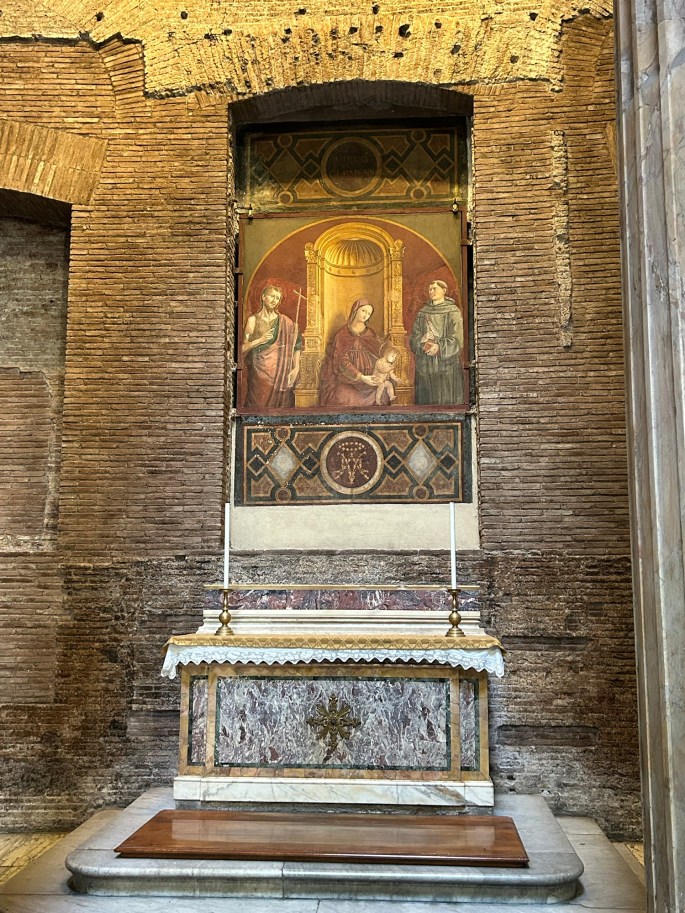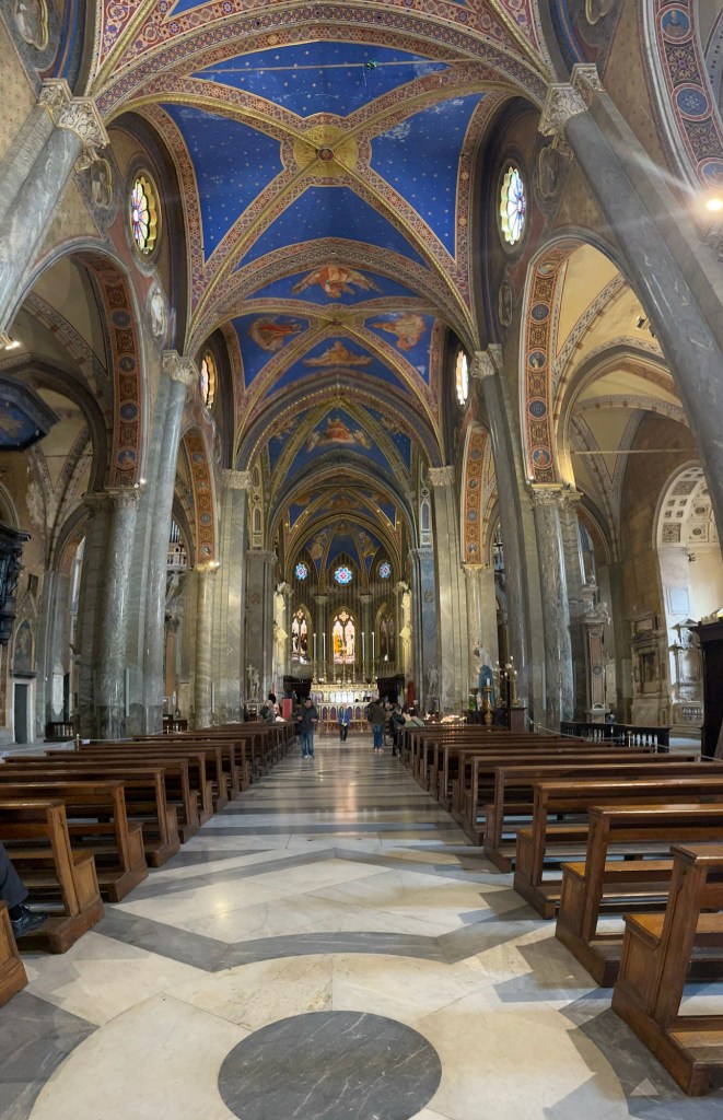 Below the table on the high altar is a 15th century sarcophagus of St. Catherine of Siena, minus her skull and a finger found in a basilica in Siena. Eric is in the foreground.
