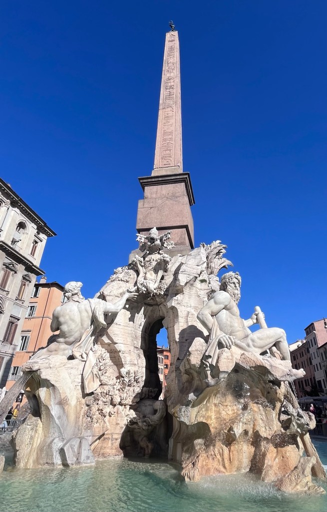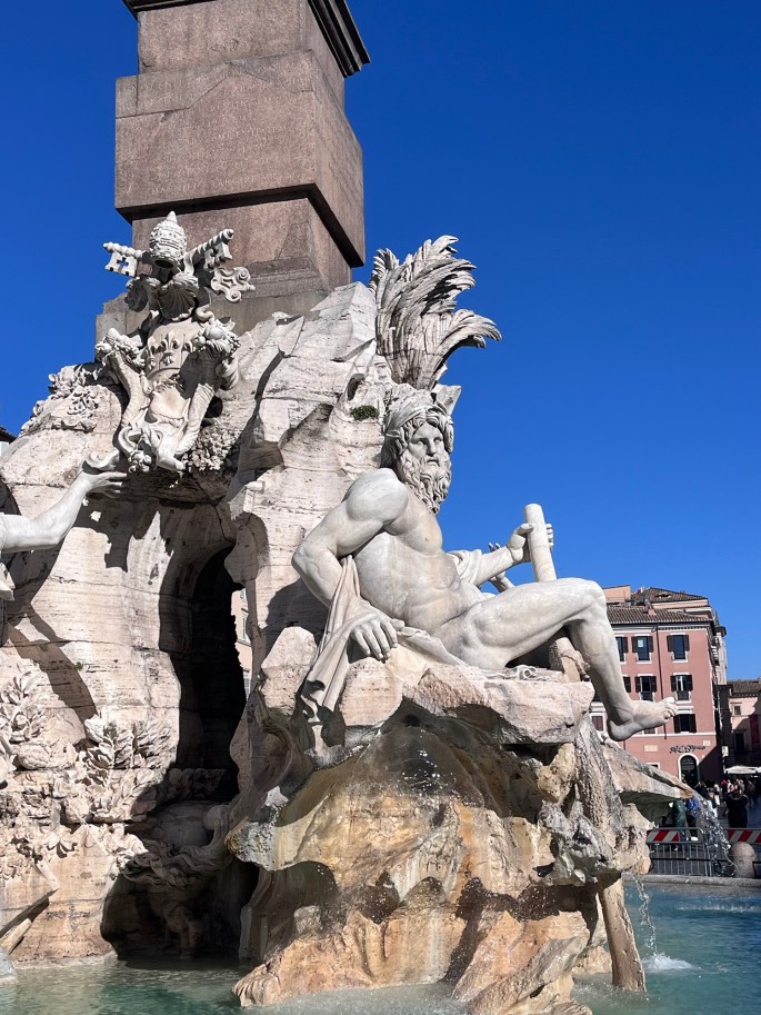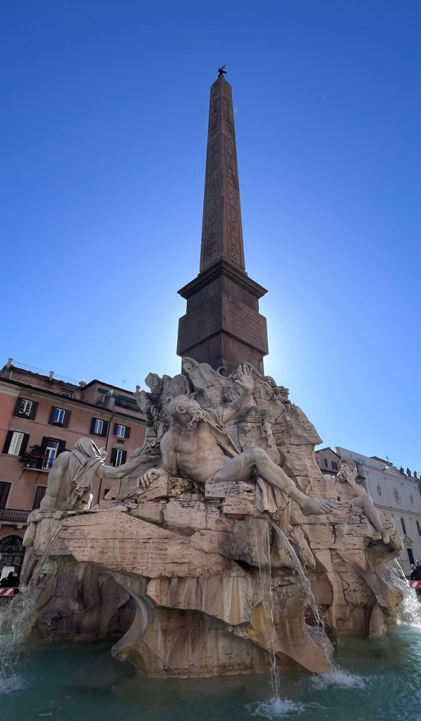 Called the Fountain of Four Rivers and designed in 1651 to be representative of the spread of papal authority. There was so many details wrapped up in this fountain. You could keep circling and find more things during each circumference.