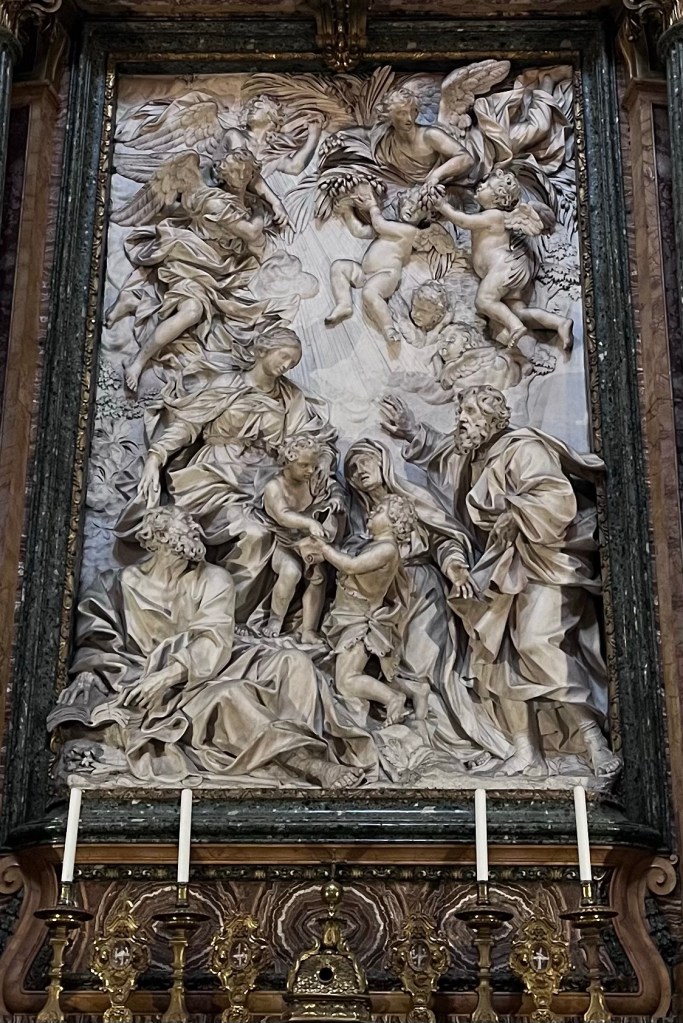 This altarpiece represents the Holy Family with little St. John the Baptist, Joseph & Mary and baby Jesus. There is a lot more to this, but it started getting complicated.
