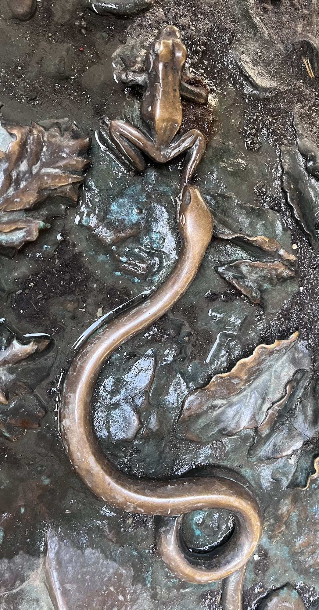 Most are so involved with touching the snout, I don’t believe they notice all of the other ‘critters’ in this sculpture. The more I circled it, the more I found. This is only a small sampling.