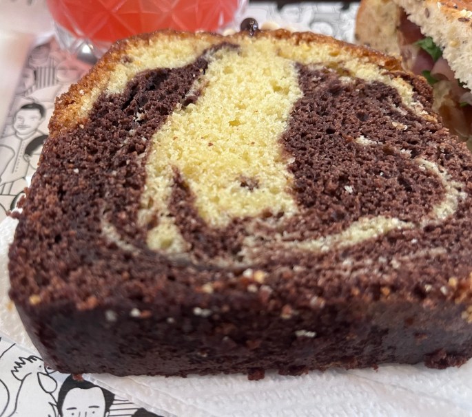 And let’s not forget desserts. One time I got this cake, slightly warmed up. It was very good.