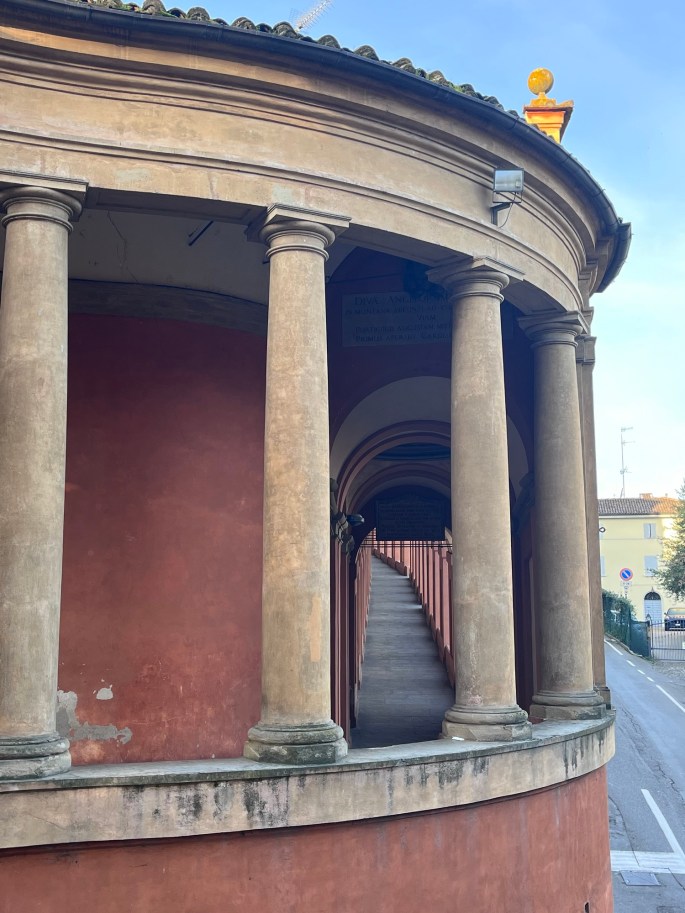 A portico featured prominently for one of our ‘walks’. The Sanctuary of Madonna di San Luca is a symbol of Bologna and sited atop a forested hill. The church is the most important sanctuary in the civil and religious history of the city.