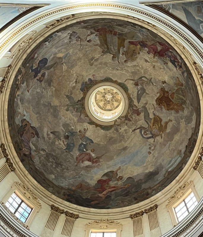 The round part of the building was open when we arrived and the only space available for us to explore. Why was this church here? A church as a chapel has existed on this hill for about 1000 years. The current building was built in the 18th century to replace the 15th century construction.