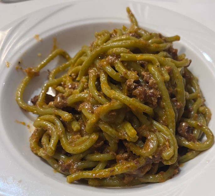 Adrienne ordered Tagliatelle with classic Bolognese sauce.