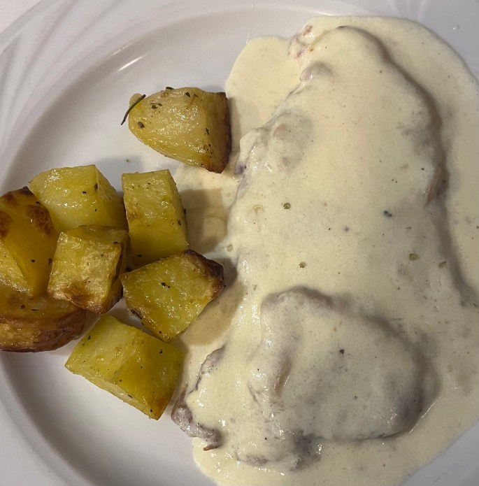 I had a delicious entre: Scaloppina with cheese, parma ham and roasted potatoes.