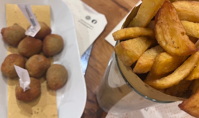 We started with a few appetizers, fried olives & fries…………Okay, everybody understands the fries, but fried olives? Yep. If we see them again, they are being ordered. Eric tried to dissect them to see if he could duplicate once home. We’ll see.