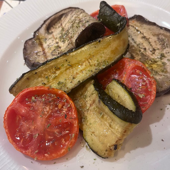 The grilled veggies were a departure from the norm for us. I pretty much left them alone and ate most of the fries.
