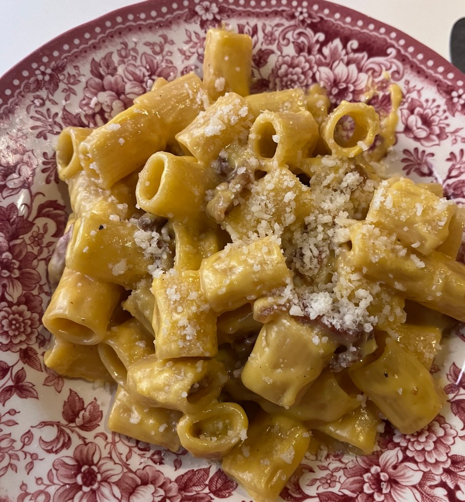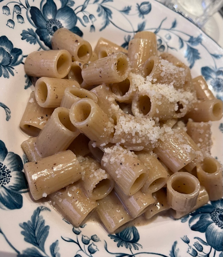 While the girls ordered cacio pepe (left) and pasta carbonara (right).