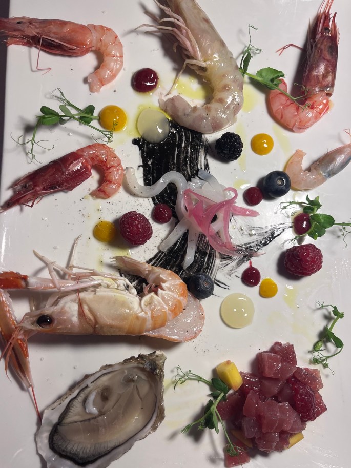 We shared seafood crudo. OMG! We could have ordered one for each of us. As it was, we each picked items that interested us until all was gone. It was fantastic.