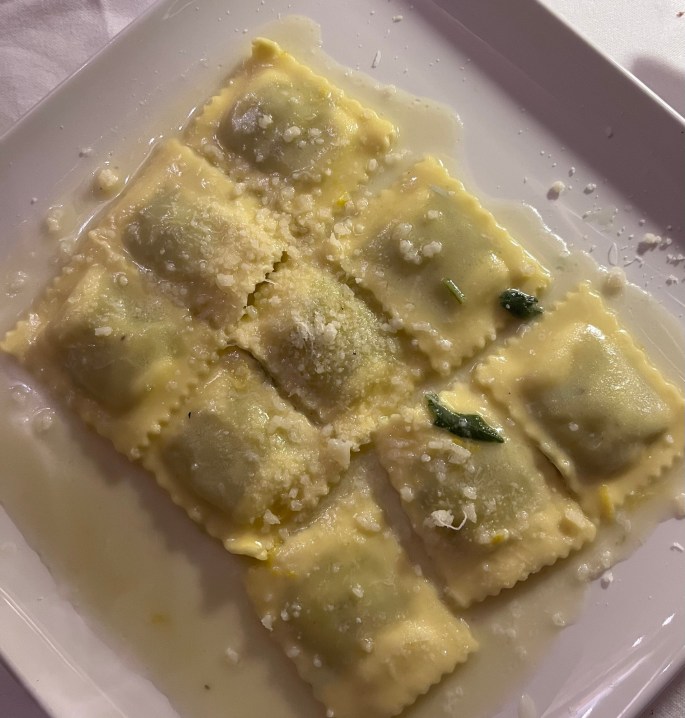 I ordered stuffed ravioli (no, I don’t remember what the stuffing was………..). It was very good – much better than my selection in Florence.
