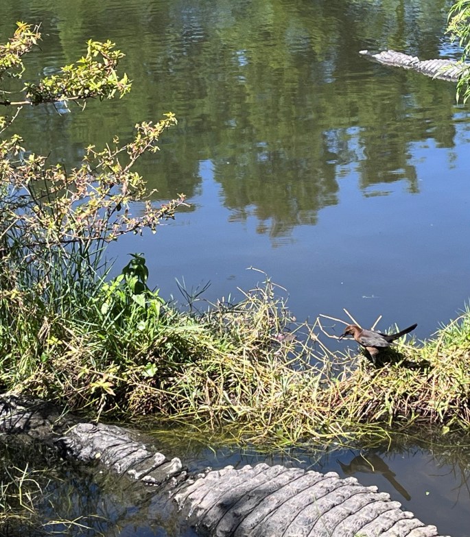 Another bird that seems to have lost their fear of these reptiles OR knows they can fly away pretty darn fast.