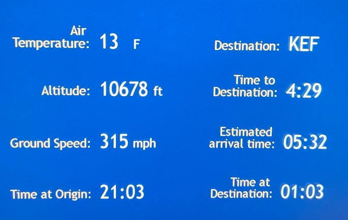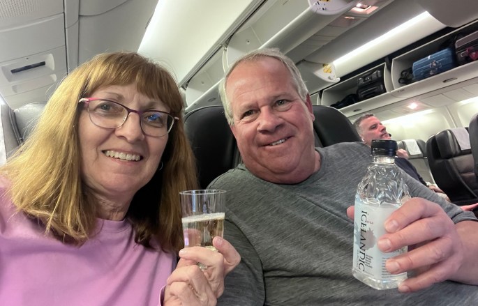 Plenty of time for our layover and the next flight was again, v.e.r.y different, luckily in the opposite way. We were some of the first to board and were given an option of prosecco while the remainder were boarding. I’m liking this! Eric stuck with the Icelandic water since he would be driving after landing.