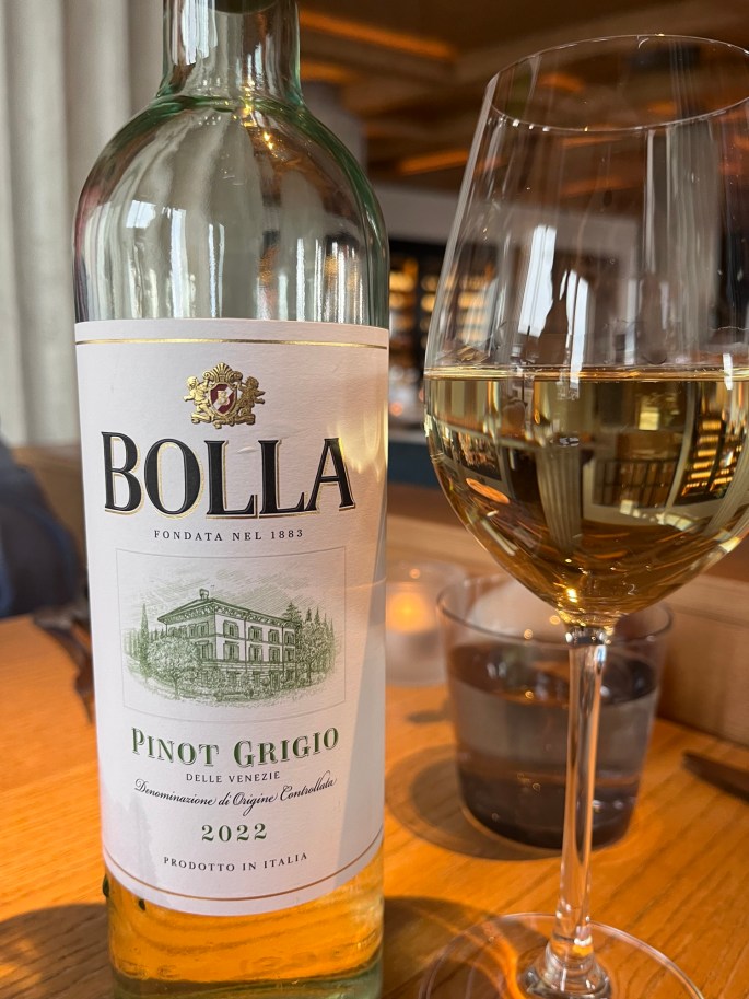 Wine and a cocktail started the meal. White wine for me. No, I didn’t drink the entire bottle, just one glass.