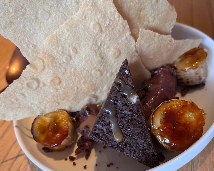 Naturally we had to celebrate with desserts. My selection was the Omnom Chocolate Banoffee: chocolate cake, caramelized bananas, chocolate cream and crunchy coffee phyllo dough. Desserts are always a winner!