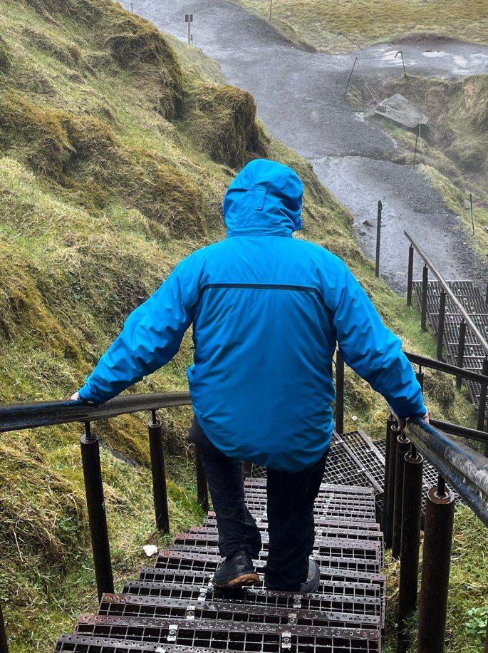 The wind and spray were blowing quite a bit. Most visitors purchase some type of rain gear or poncho for their Iceland visit. Not us.