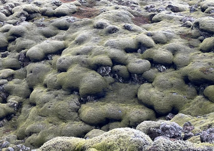 The moss family can be traced back 400 million years and mosses were the first plants to settle on dry land. There are 606 different species of mosses in Iceland. Moss absorbs nutrients and water through its leaves and can colonize rocky surfaces such as lava fields where other plants cannot survive.