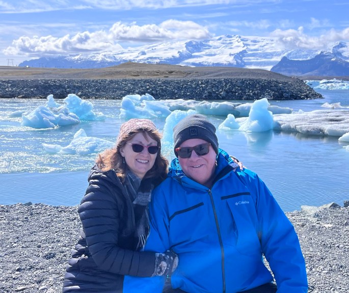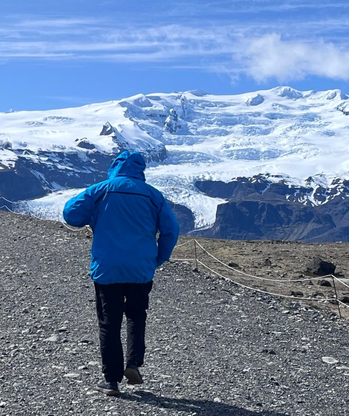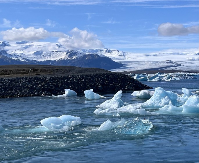 Eric picked up a floating piece of ice along the rocky beach, quick photo before it went back into the lagoon.