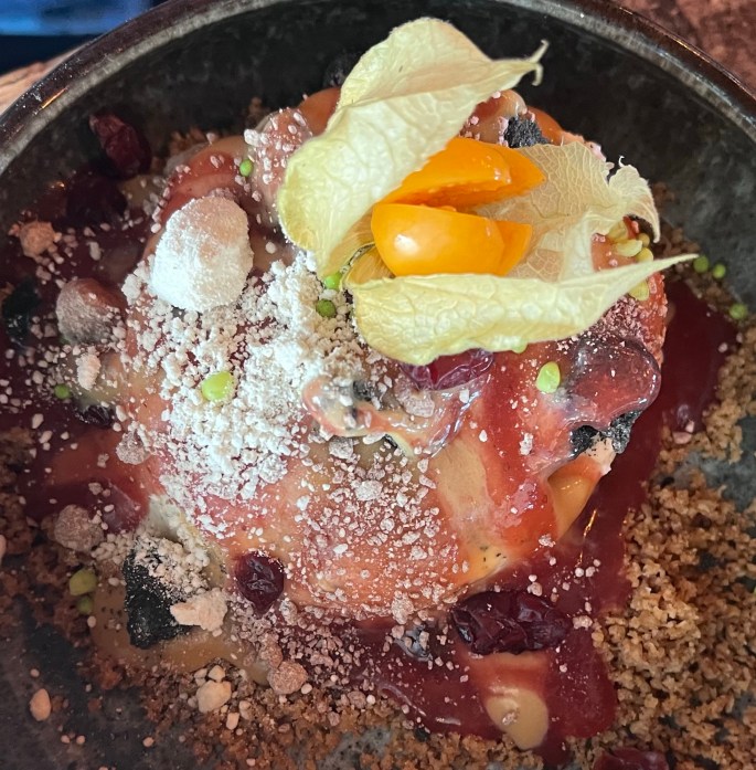 Eric chose the Skyr Volcano. Icelandic skyr mousse with Tahiti vanilla, lava, ash, pop rocks and caramel. It was also a gooey delicious bowl of goodness.