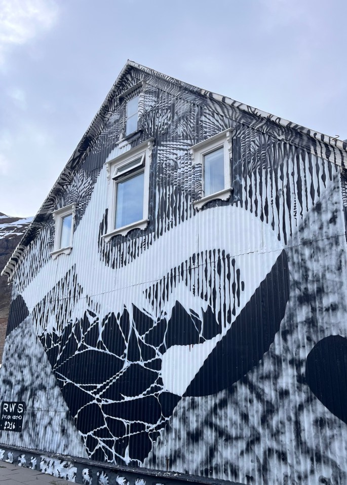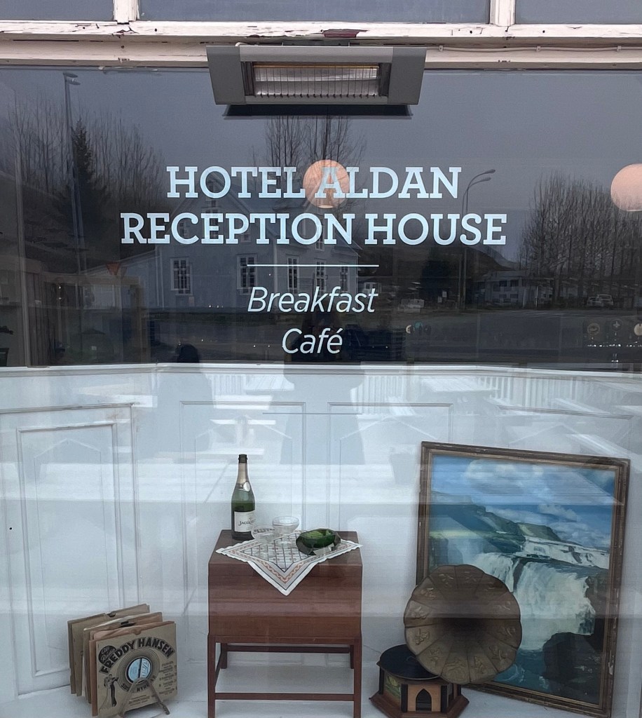 My previous post described the 30-minute drive away from the ring road to Seydisfjorduir. The drive was made a bit more exciting due to the snow, the curves and the mountain pass. We stayed at Hotel Aldan. They have purchased four individual historic houses and ultimately made them hotel rooms. Everyone stopped at the spot below to check-into their specific lodging.
