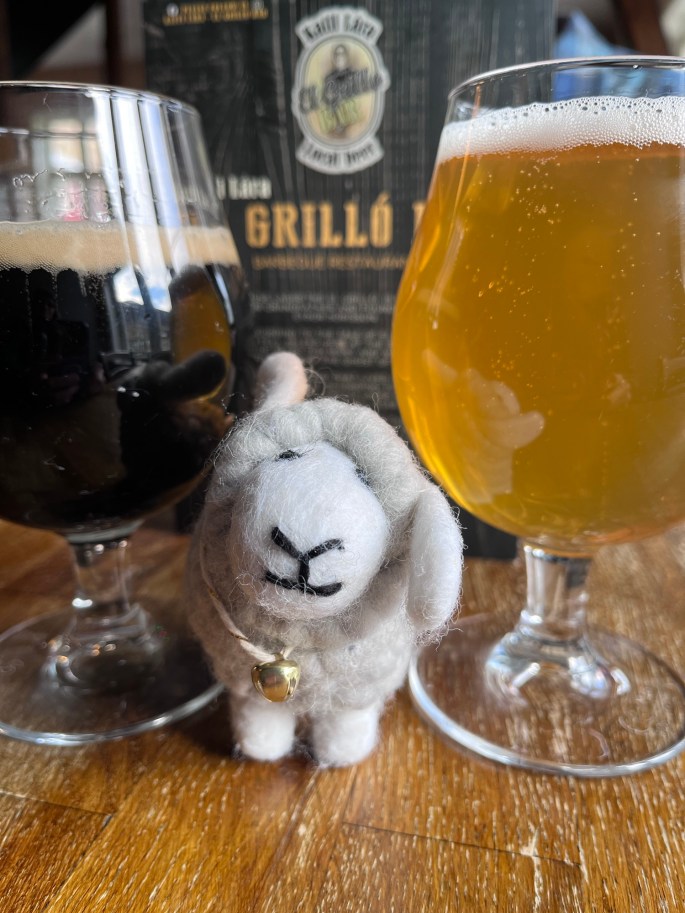 Walking around town was tiring. Really! The wind was blowing a gale and we were the only ones out walking. We needed something to boost our energy. This place had good looking burgers but was going to be too much food since we had a late lunch. We settled on liquid refreshment.