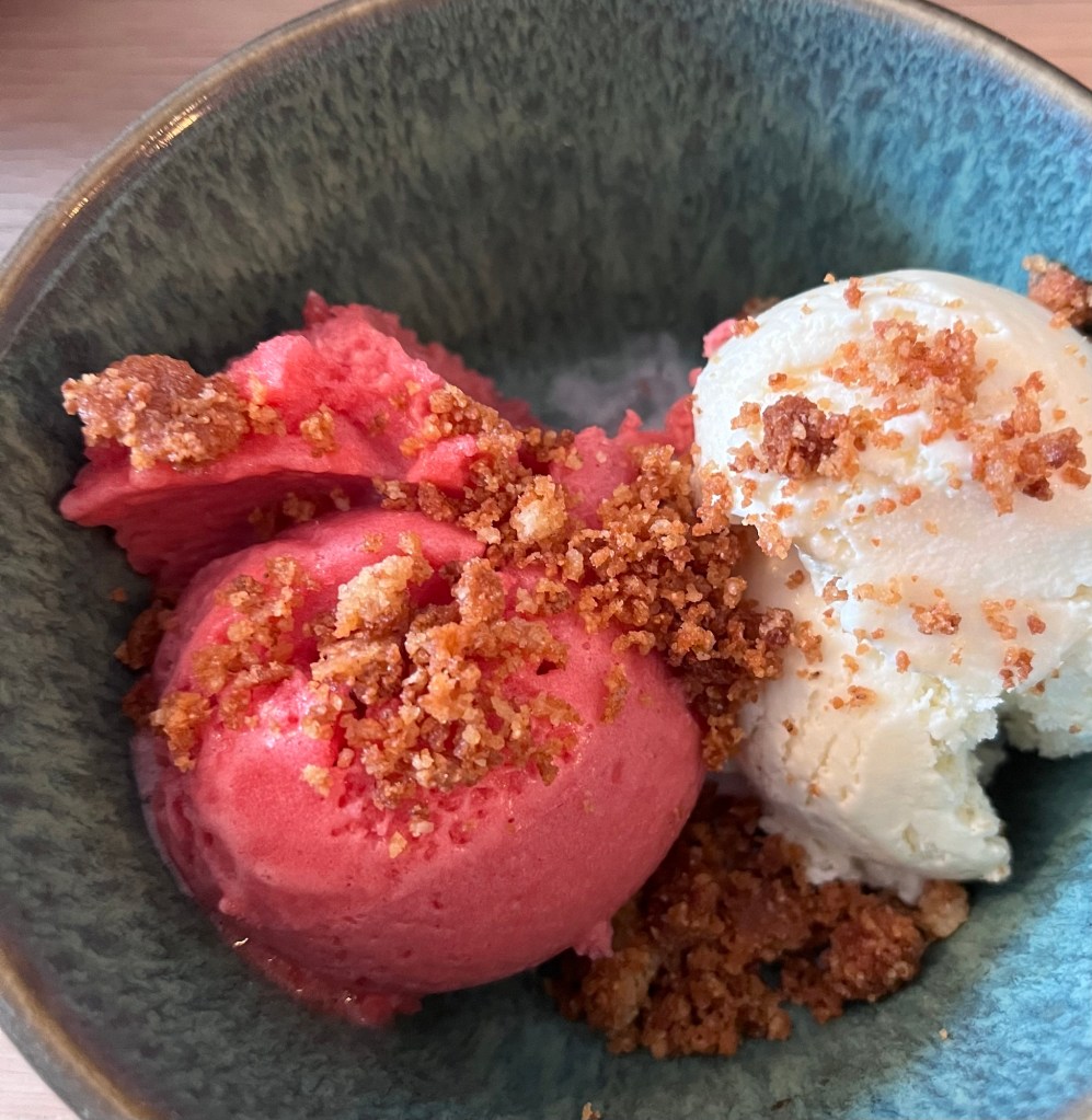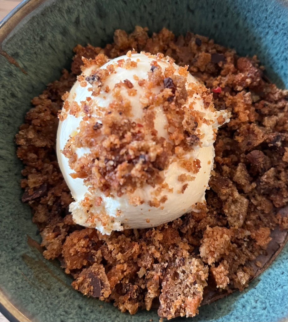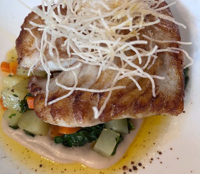 Eric went with the fish of the day – also delicious and he shared. It was sitting on some sautéed veggies and mashed root vegetable. Sorry for the description, that’s the best I can do. The fish was really good.