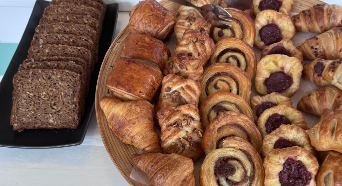 Along with coffee, tea and several juices you could also make your own waffle – which we did.