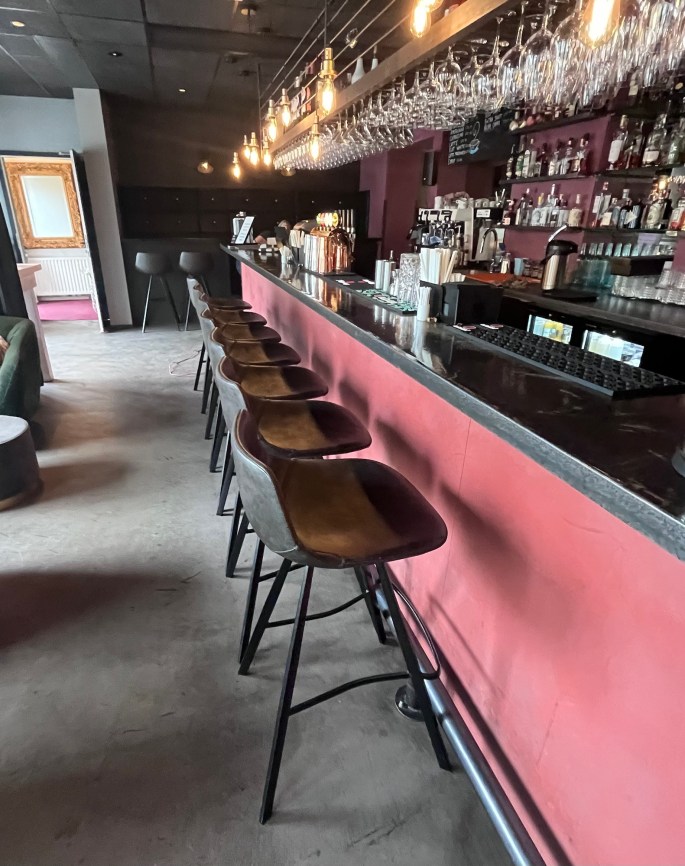 Check-in was at the bar on the first floor. There was no reception desk. What kind of place were we staying in?