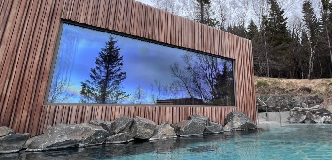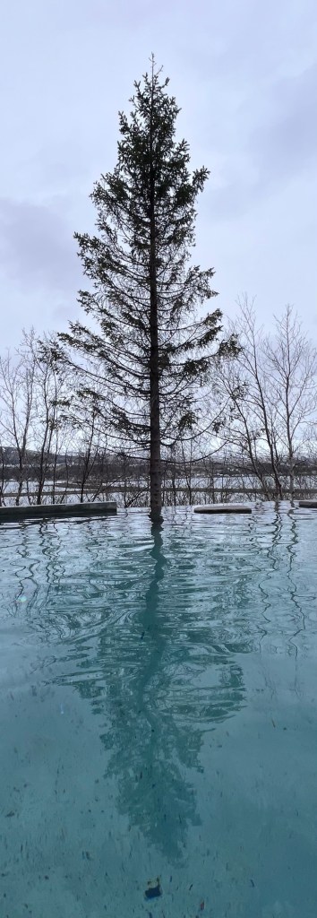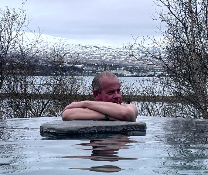 It really was lovely, quiet and peaceful with everyone being respectful of your space in the pools. The bay and Akureyri was the view beyond the infinity pool’s edge.