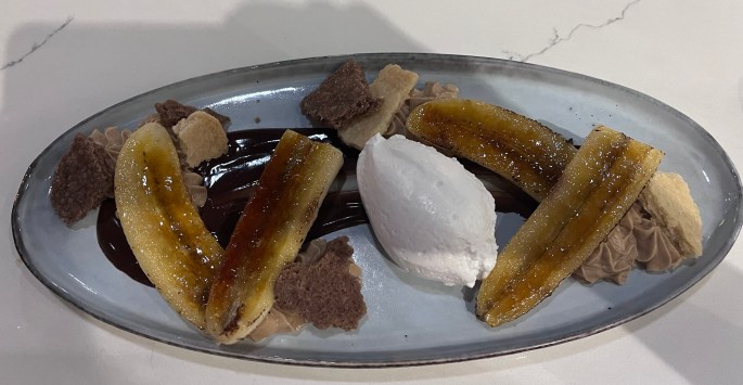 Desserts were a great end to our meal. My selection highlighted glazed bananas and ice cream – an excellent choice. The photo of Eric’s ice cream (2) scoops didn’t make the cut. 🙂