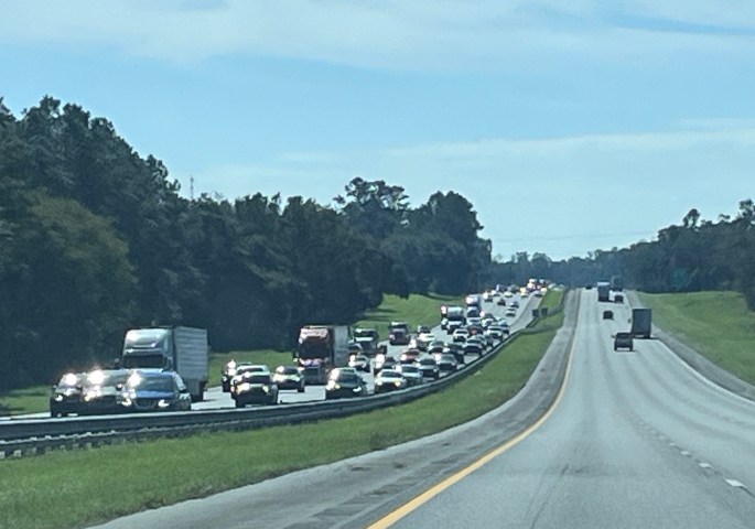 I looked over once……………..and no vehicles heading north. Oh no. Yep, accidents were seriously delaying the escaping traffic headed north.