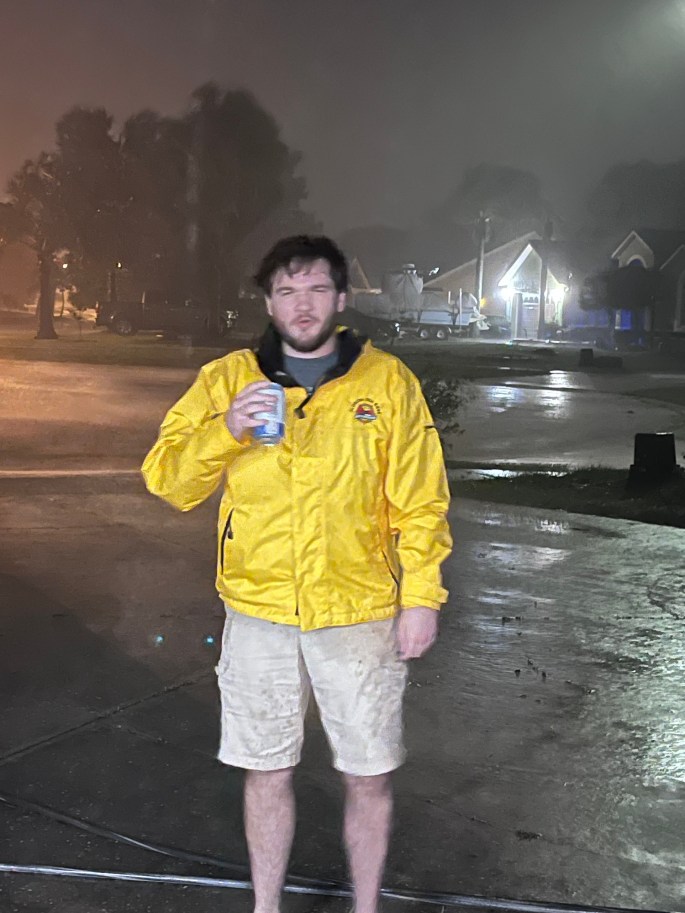 Connor stepped outside for a brief moment, getting soaked in a short minute.