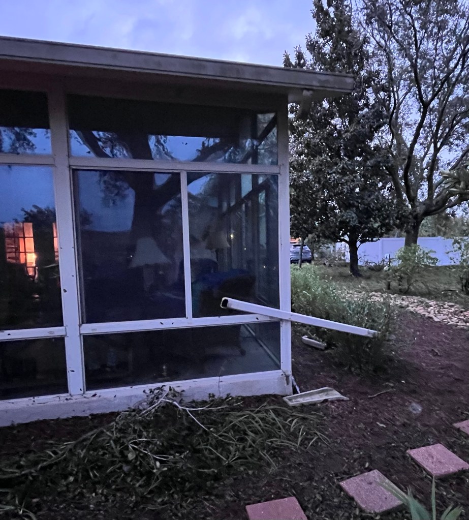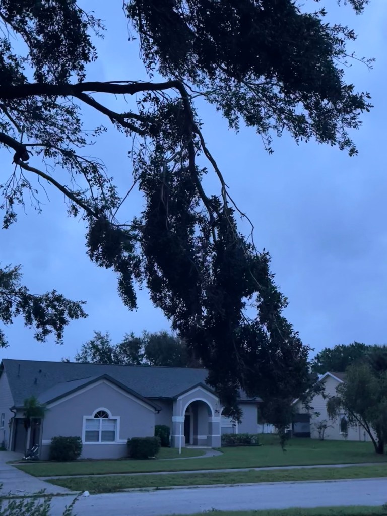 It reached our house at 3:20am. The force of the wind picking up branches, leaves and other debris was nerve-wracking – woke me up. Thanks, hon, for staying up the entire time to keep us safe. 🙂