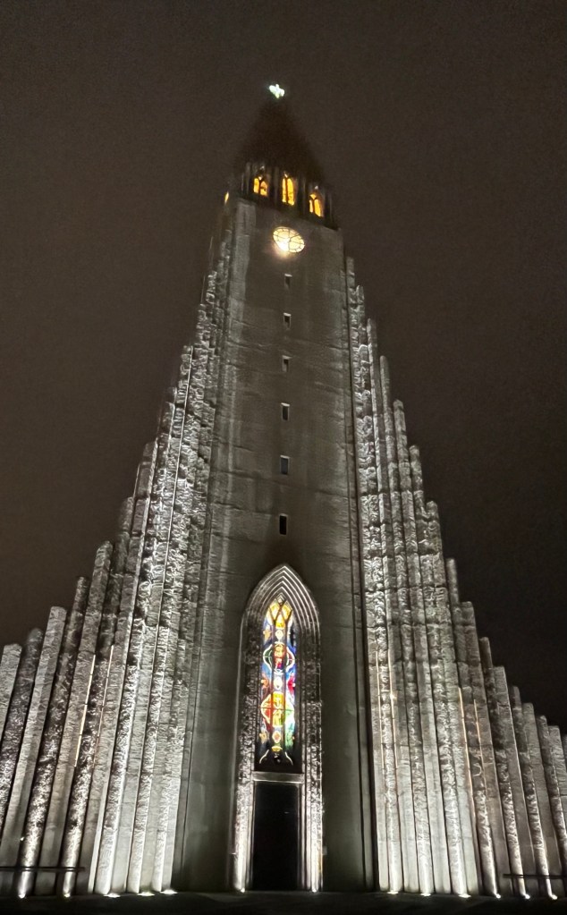 We met at the Viking statue, in front of the Hallgrimskirkja church. We walked the area earlier and I shot these night-time photos of the church.