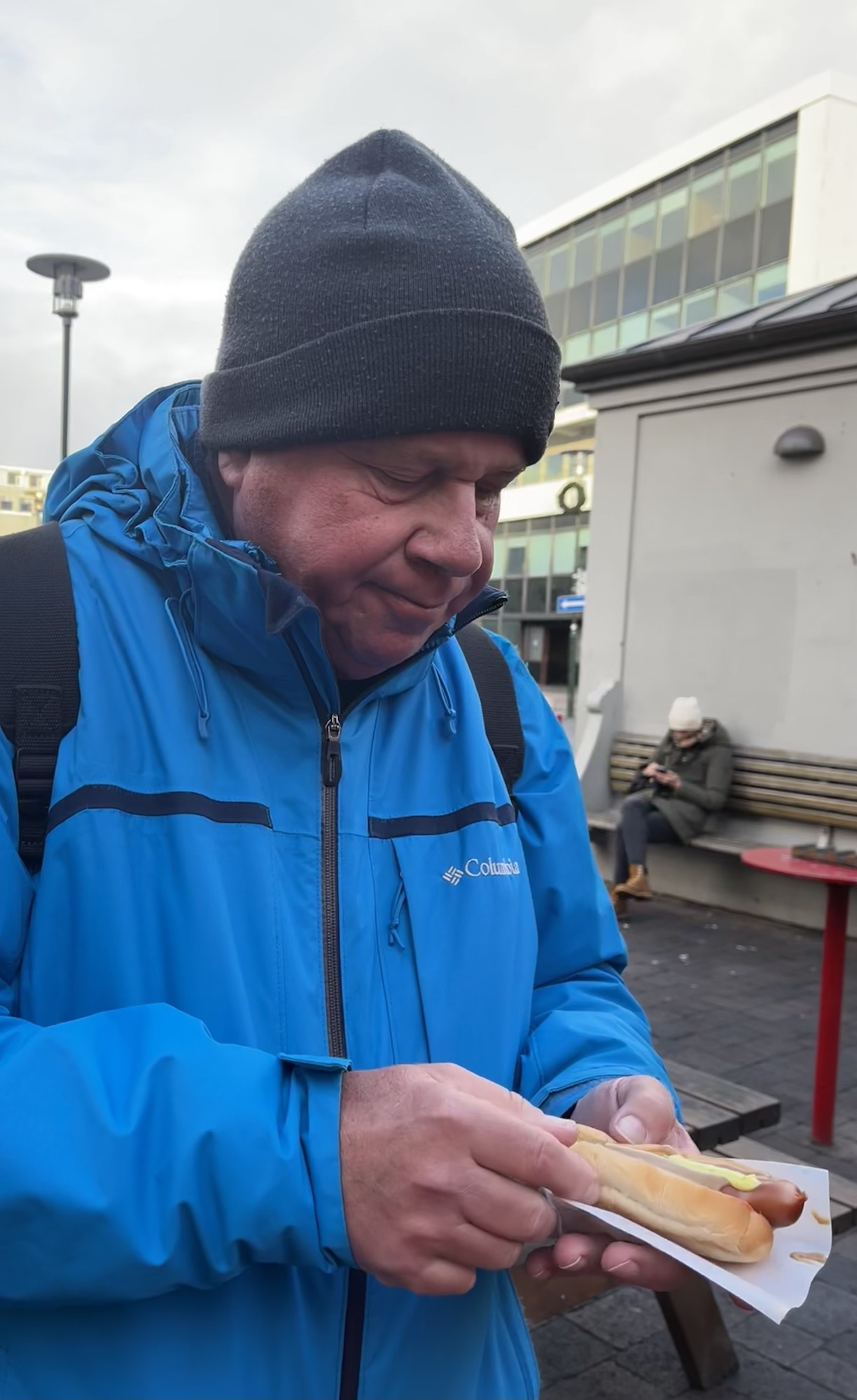 It got too loud for conversation, so we headed for our last stop, an Icelandic tradition…….Icelandic hotdogs. This spot is the most ‘famous’ location for hot dogs. Yep, it is outside in a small square. What makes their hot dogs special? The main ingredients are lamb, beef and pork, mixed in a specific ratio. The recipe includes salt, paprika, pepper, garlic, onion, coriander and other seasonings.