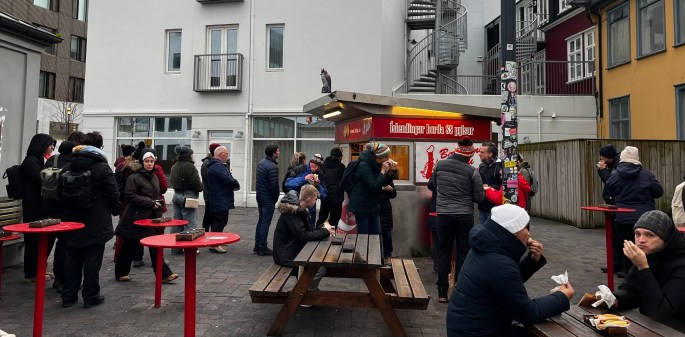 Throughout our visit – no matter the time of day – they had a line and people eating their dogs outside. It was a thing. Besides being a cheap street food, it is one of the symbols of Icelandic food culture.