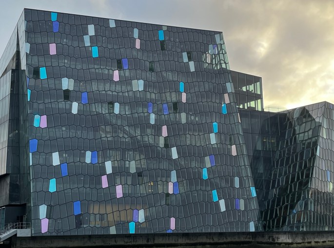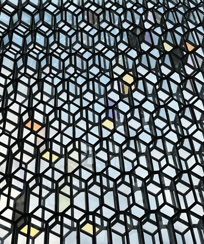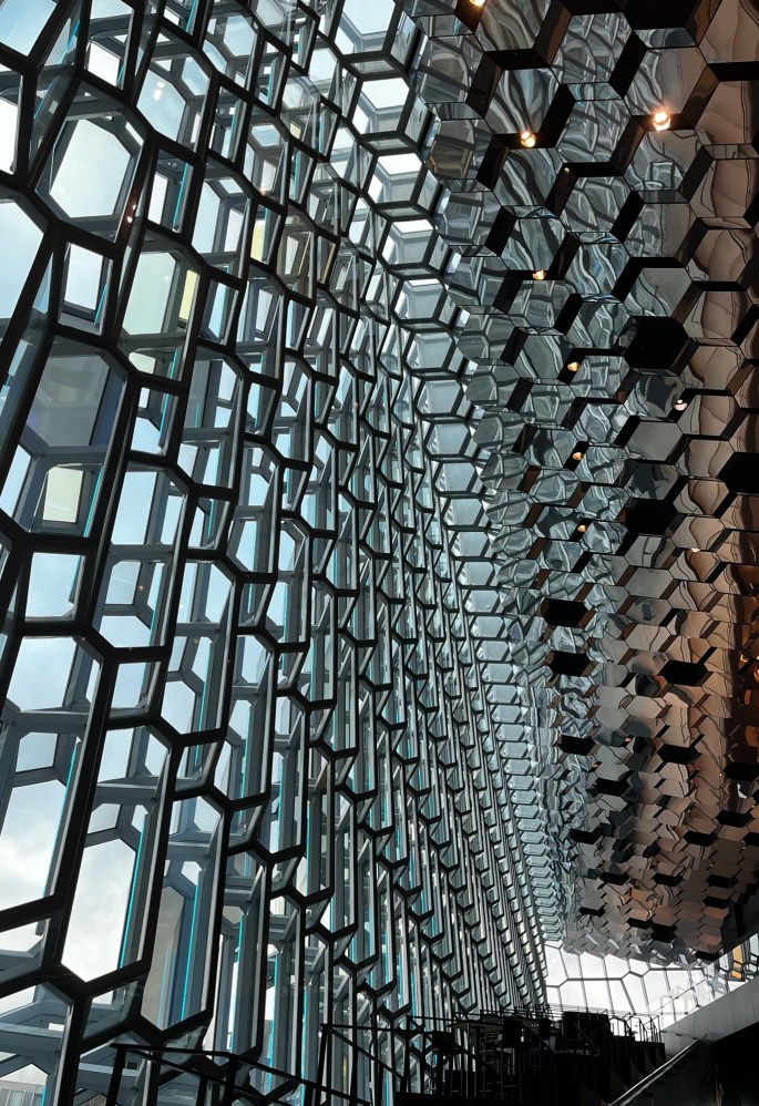 While the sculpture sits along the water, a short distance away was one of their iconic venues – The Harpa Concert Hall & Conference Center.