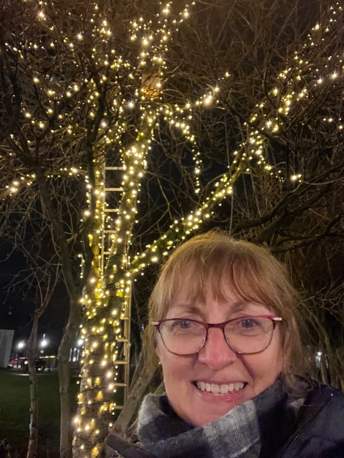 They don’t celebrate Thanksgiving like we do in the states, so there’s no back& forth or discussion when Christmas lights should (or should not) go up. They were wrapping the trees in the square in front of us during our visit. You can barely see the worker in the upper left corner in a high reach finishing up this tree.